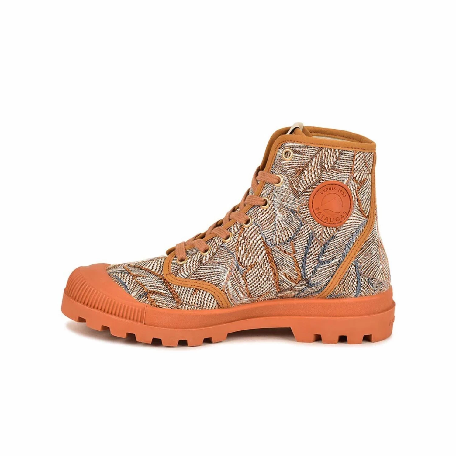 Laissez-vous séduire par notre brodequin de toile iconique Pataugas, revisitée dans une toile originale Jacquard tissée en France. Les motifs floraux sont très tendances et frais pour la saison. Cette chaussure est vulcanisée dans une semelle en caoutchouc naturel monochrome ce qui la rend légère et très confortable. Sa première de propreté amovible en mousse haute densité vous apportera confort et légèreté.