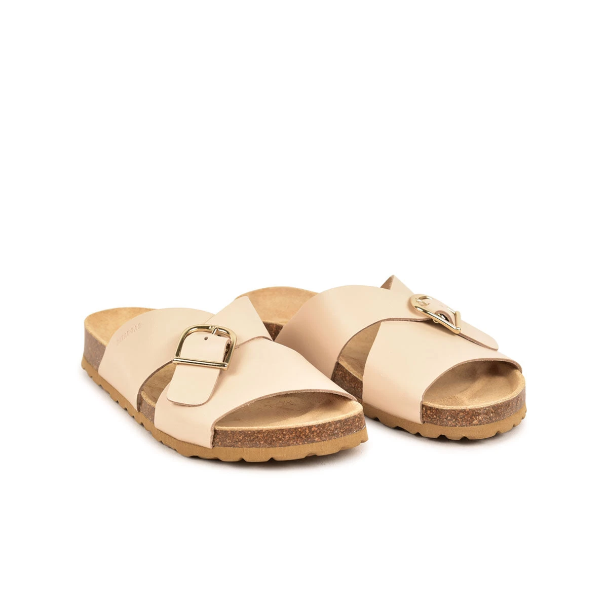 Découvrez la nouveauté de la saison LUDI, la mule classique et intemporelle. Cette version en cuir nude sera idéale pour tous les jours, facile à enfiler et à porter au quotidien. Ses brides latérales permettent un bon maintien et sa petite boucle dorée assure un réglage facile pour tous les pieds. Enfin, sa semelle épaisse et légèrement crantée la rend très confortable. Sa voûte plantaire moulée apporte du soutien et amorti les chocs ; doublée en suède, elle régule la transpiration.