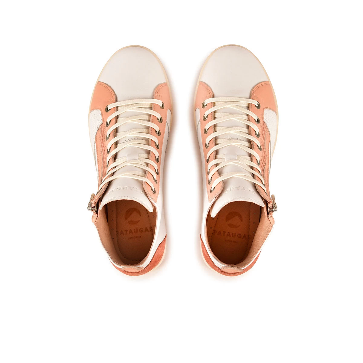 La basket montante PALME est retravaillĂ©e cette saison grâce Ă son petit empiècement perforĂ© qui lui apporte une touche estivale et respirante. Nouvelle forme pour notre Palme sans boucle! Celle-ci emprunte les codes du sport ambiance tennis avec son cuir blanc lĂ©gèrement perforĂ© et ses accents couleurs. Le modèle PALME vĂ©ritable rĂ©fĂ©rence en terme de confort grâce Ă sa semelle en injectĂ© ultra-souple, vous apportera une grande flexibilitĂ© dans vos mouvements. Sa tige en cuir fin et lĂ©ger permet Ă cette chaussure d’Ă©pouser parfaitement la morphologie de votre pied. Son mix de cuirs est Ă©lĂ©gant et sa fermeture Ă©clair est très pratique pour faciliter le chaussant.